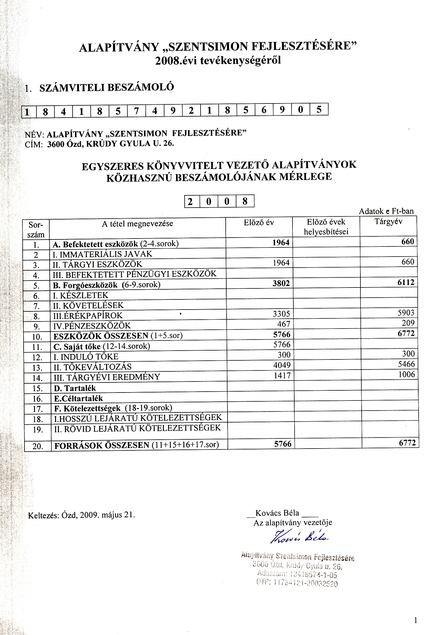 ...teljes neve : Alapítvány Szentsimon Fejlesztésére.